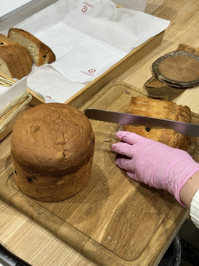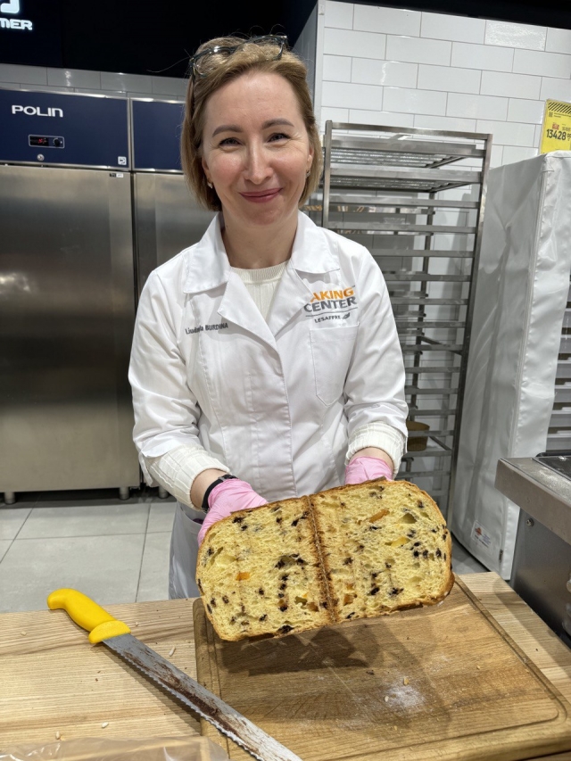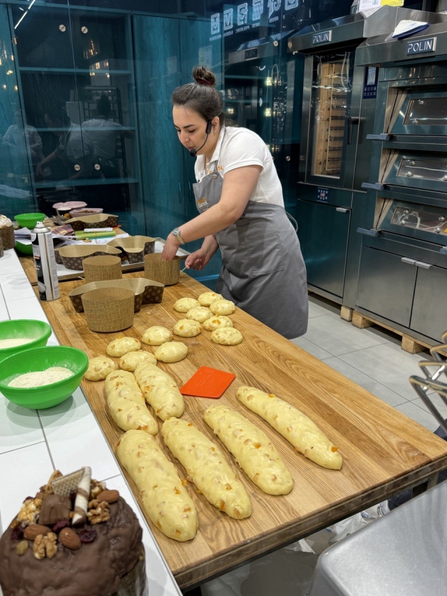 Доцент кафедри технології м’ясних, рибних та морепродуктів Олена ОЧКОЛЯС вкотре набуває нового досвіду, удосконалює раніше набуті навички, отримує нові знання, приймаючи участь у черговому майстер-класі. Цього разу це був майстер-клас з приготування пасок та панеттоне на заквасці, який проводила компанія Епіцентр, використовуючи професійне італійське обладнання POLIN, в лабораторії Бейкері.