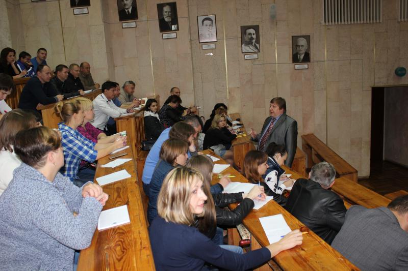 На факультеті ветеринарної медицини слухачів курсів підвищення кваліфікації зустрічав заступник декана факультету ветеринарної медицини з післядипломної освіти, к.вет.н., доцент Бойко Г.В., який провів лекцію «Післядипломна освіта лікарів ветеринарної медицини в Україні».