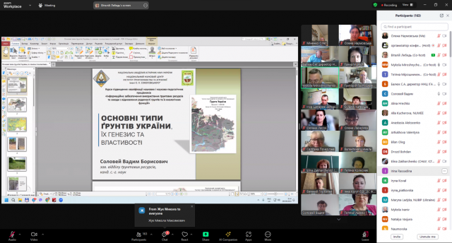 За ініціативи керівництва Національного наукового центру «Інститут грунтознавства та агрохімії імені О.Н. Соколовського» із 9 до 15 вересня для науковців установ Національної академії аграрних наук та закладів вищої освіти аграрного профілю було організовано курси підвищення кваліфікації за напрямом «Інформаційне забезпечення використання грунтових ресурсів та заходи з відновлення родючості грунтів та їх екологічних функцій». Лекторами доповідей призначено висококваліфікованих науковців Інституту. Форма проведення заходу – дистанційна на базі Zoom-платформи.