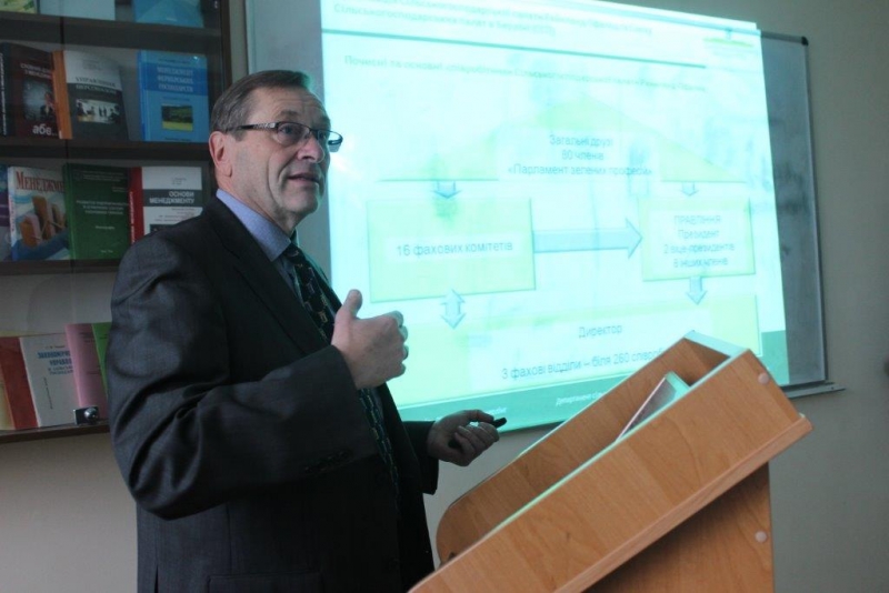 23 листопада 2018 р. у навчальній лабораторії «Кабінет менеджменту» кафедри менеджменту ім. проф. Й.С. Завадського відбулася лекція для студентів 3 курсу факультету аграрного менеджменту на тему: «Консультаційні послуги в Німеччині: досвід сільськогосподарських палат». Начальник відділу «Сільське господарство, виробництво та ринок» Сільськогосподарської палати Рейнланд-Пфальц (Німмечина) Вільгельм Ціммерлін представив доповідь у ході якої детально ознайомив присутніх із діяльністю, завданнями та структурою Сільськогосподарської палати Рейнланд-Пфальц, розкрив специфіку її фінансування. Зазначив, що сільськогосподарські палати в Німеччині створені на основі діючого законодавства федеральних земель, представляють собою самоуправні організації аграрних товаровиробників і є корпораціями публічного права. Сільськогосподарські палати допомагають фермерам, власникам лісу, садівникам, рибникам, виноробам та їх найманим працівникам відстоювати власні інтереси.