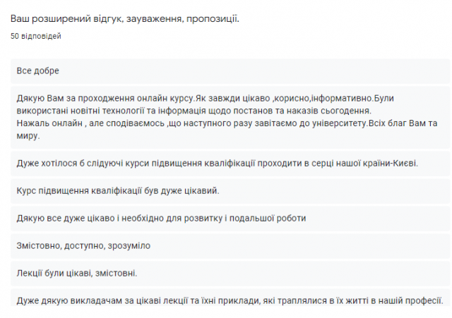 У своїх відгуках слухачі підвищення кваліфікації подякував науково-педагогічному колективу НУБіП за їхню працю та знання, які вони отримали в Університеті.