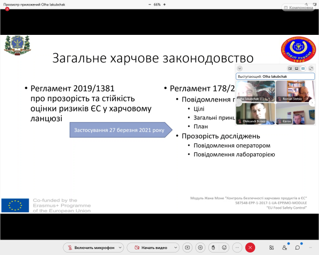 З 9 по 20 травня 2022 р. на базі факультету ветеринарної медицини спільно з ННІ неперервної освіти і туризму дистанційно підвищували кваліфікацію керівникам і спеціалістам Державної служби України з питань безпечності харчових продуктів та захисту споживачів, керівників і спеціалістів державних установ, які належать до сфери управління Держпродспоживслужби. Згідно плану-графіку навчання проходили фахівці міжрегіональних управлінь Держпродспоживслужби України на державному кордоні