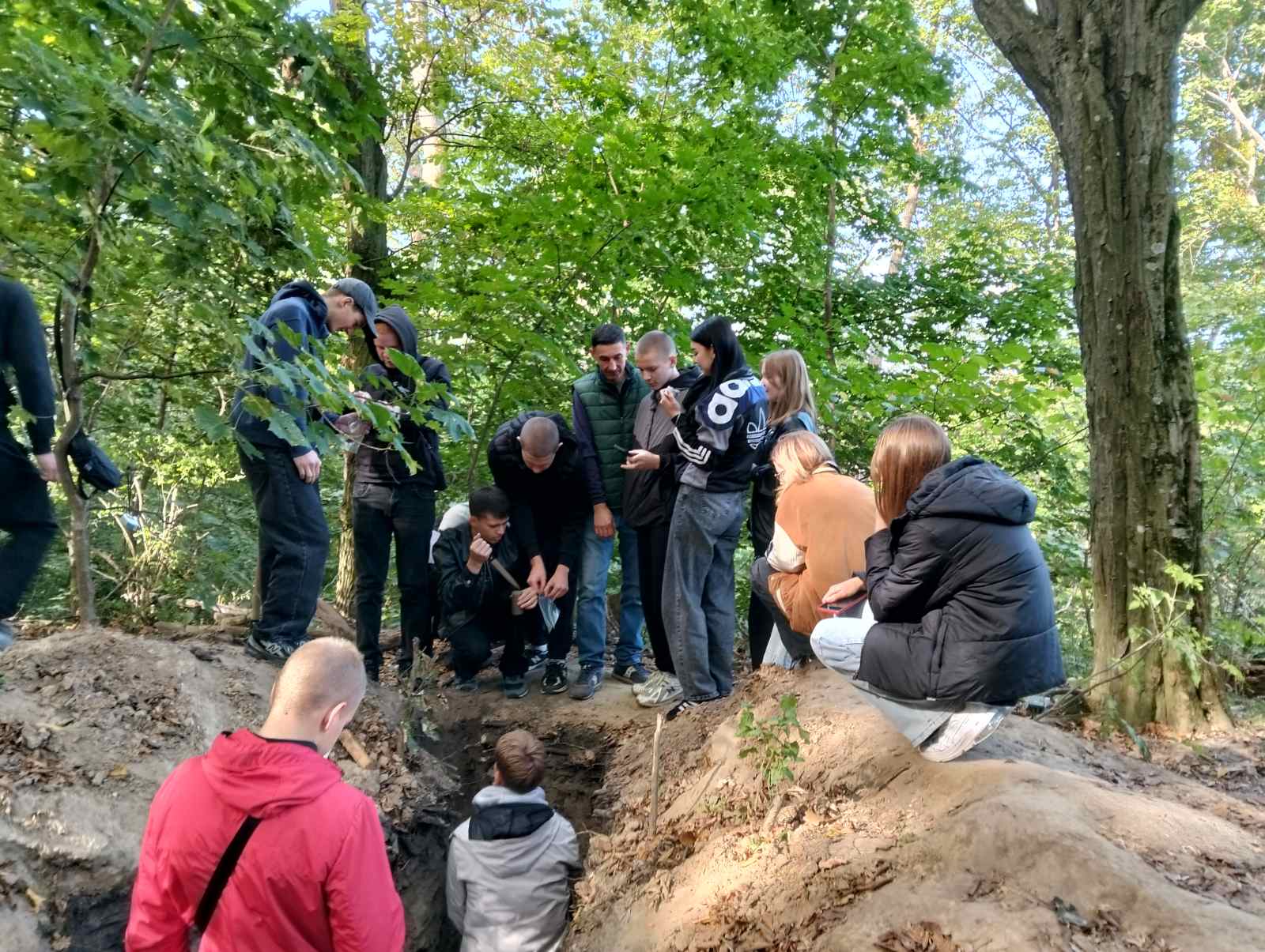 Вивчення факторів ґрунтоутворення студенти розпочали із опису рослинності. В лісі визначали рослини верхнього ярусу та підліску. Окремо фіксувалася лісова підстилка та наземне вкриття трав’янистими рослинами. Паралельно вивчався рельєф, як фактор ґрунтоутворення – експозиція, ухил та довжина схилів, для цього використовували компас, екліметр Брандіса, вимірювальну стрічку. Фіксували, що розріз закладений у типовому місці за елементами рельєфу, прив’язка якого здійснювалася за географічними координатами. Досліджувалася материнська порода та визначалася наявність і глибина залягання карбонатів у ґрунтовому профілі.