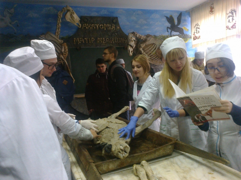 28 грудня студенти III курсу 3 групи агробіологічного факультету з приємністю відвідали музей анатомії при кафедрі анатомії тварин ім. академіка В. Касьяненка НУБіП України. Доцент кафедри Стегній Микола Михайлович проінформував про історію створення музею, основоположників та науковців сьогодення, які продовжують плекати його надбання. Цікавою була інформація щодо відтворення герба кафедри із скелетів тварин.