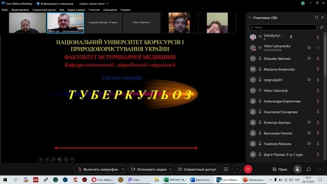 2 грудня 2021 року була прочитана відкрита лекція доцентом кафедри епізоотології, мікробіології і вірусології Віктором Шевчуком на тему «Туберкульоз» для студентів 3 курсу, які навчаються за скороченою програмою на спеціальності «Ветеринарна медицина» ОС «Бакалавр».