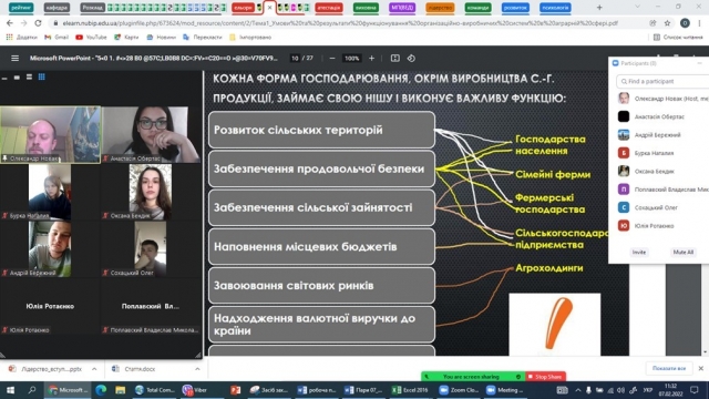 На 3-й парі Новаком Олександром Володимировичем було проведено лекційне заняття для здобувачів 3 курсу 3 групи факультету аграрного менеджменту з дисципліни «Менеджмент підприємств агропромислового виробництва».Олександр Володимирович ознайомив здобувачів вищої освіти із розвитком аграрної сфери в Україні, тенденціями й перспективами розвитку форм господарювання в сільському господарстві України.
