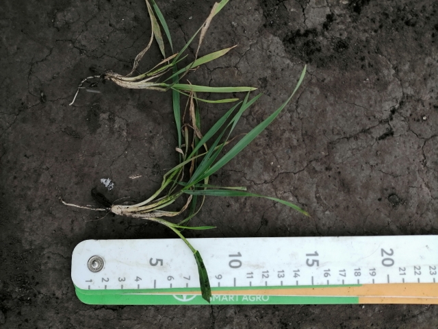 Паралельно проводилось обстеження посівів озимої пшениці. Таким чином, не зважаючи на ситуація, що складається на сьогодні із вологозабезпеченням, посіви озимої пшениці знаходяться в доброму стані, рослини розкущилися маючи 3-4 пагони а кількість пагонів на гектар коливається в межах 6 - 7 млн. шт.