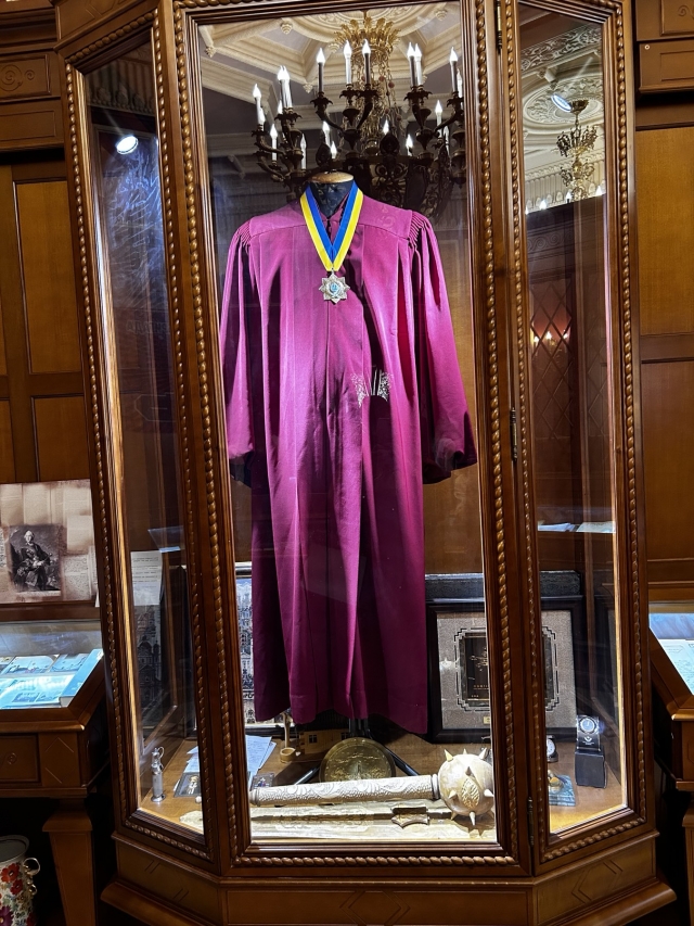 Однією з найцікавіших частин екскурсії стало відвідування музею, розташованого в Кловському палаці. Експозиція музею знайомить з історією судової системи України, починаючи з часів Київської Русі до сучасного періоду незалежної України. Особливо вразили студентів архівні матеріали та експонати, що розкривають етапи розвитку правової системи та еволюції судової влади. Серед найбільш цікавих експонатів музею варто відзначити старовинні судові книги, друковані кодекси законів XVIII століття, мантії судів, а також оригінальні документи, пов'язані з ключовими історичними подіями України. У музеї також представлені сучасні суддівські атрибути, там можна побачити судівські мантії різних років. Окрему нішу займають подарунки Верховному Суду України, вручені від імені колег з різних судових інстанцій іноземних країн.