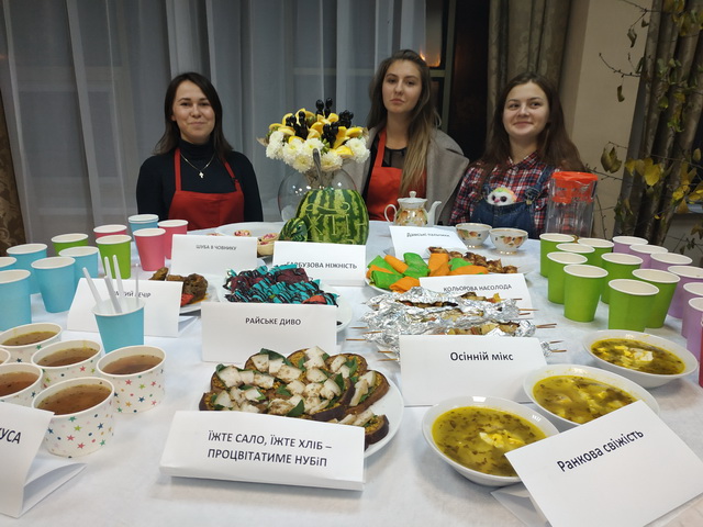 Перший курс разом із своїми кураторами Іриною Веретинською, Оксаною Пилипчук та Людмилою Тищенко «Вегетаріанська кухня»;