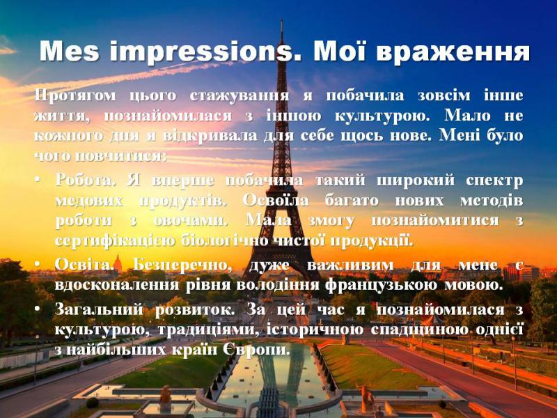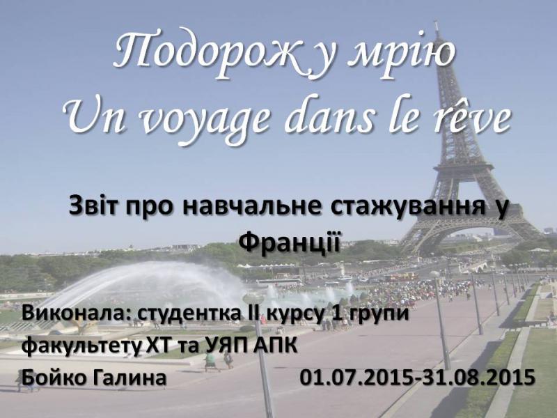 Подорож у мрію Un voyage dans le rêve Звіт про навчальне стажування у Франції пт, 18 вер 2015 - 03:00