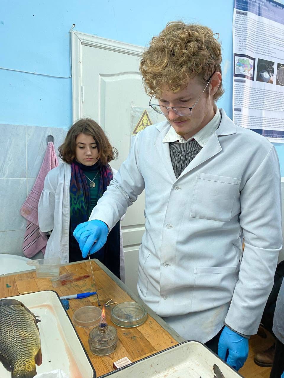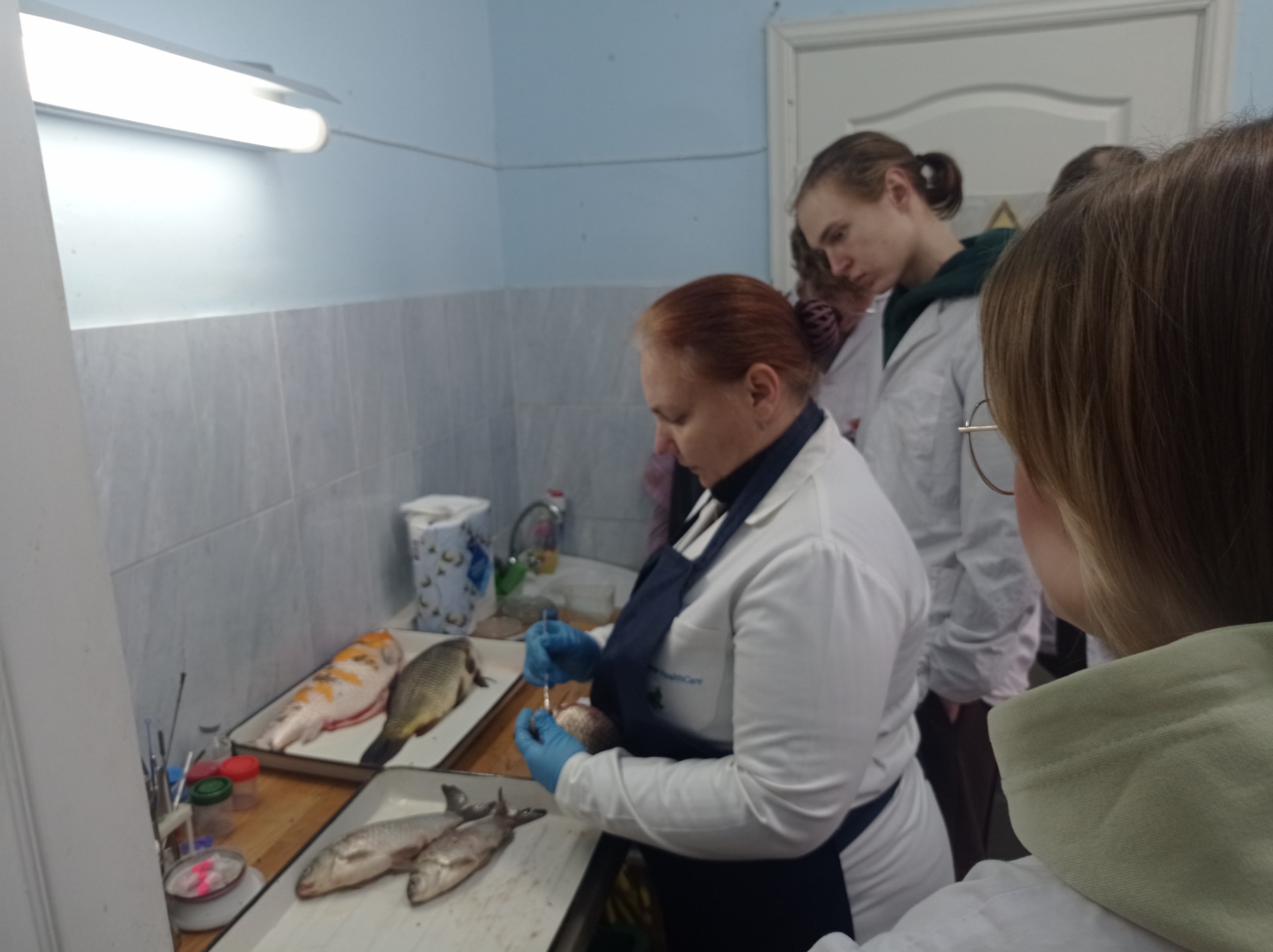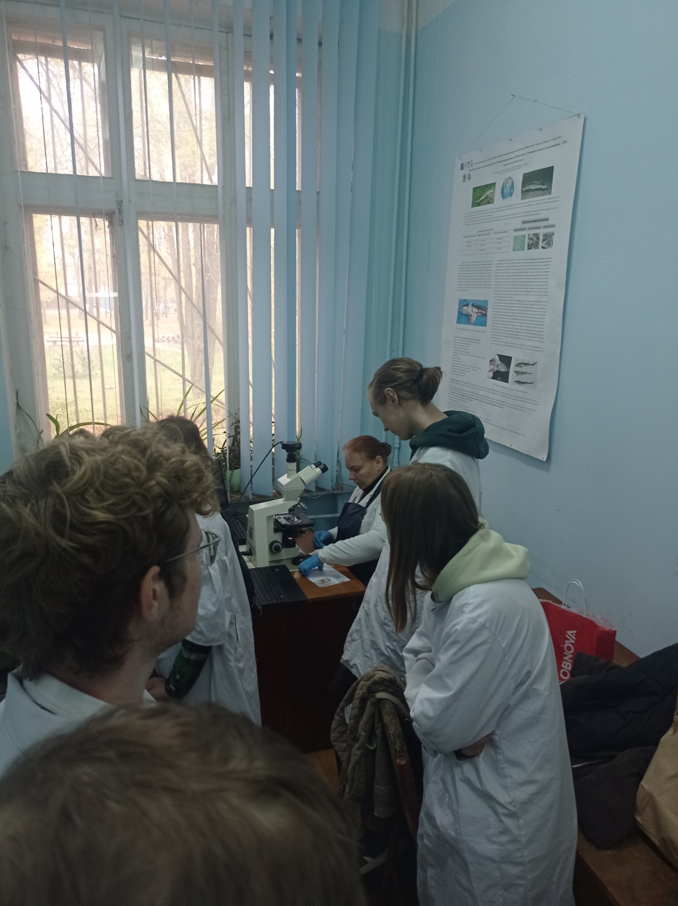 Під час заходу учасники ознайомилися з основними напрямами діяльності Інституту, зокрема з роботою лабораторії іхтіопатології, де досліджуються питання збереження здоров’я риб і біобезпеки водойм, яке на сьогодні є пріоритетним. У практичній частині заняття студенти мали можливість ознайомитися із сучасними кейсами до діагностики паразитарних захворювань риб, методами комплексного аналізу іхтіопатологічного стану водойм, а також вивчити принципи відбору та підготовки проб для лабораторних досліджень.