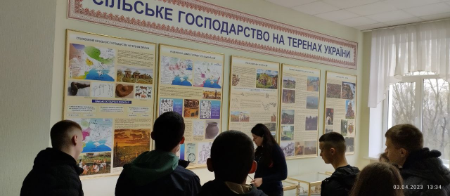 Студентам була донесена інформація про розвиток самого сільського господарства на теренах України. Також була донесена інформація про історію становлення майбутнього аграрного університету – Національного університету біоресурсів і природокористування України. Це можна було побачити на історичних документах й речах.