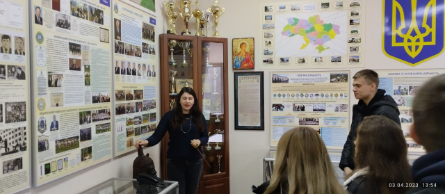 Студенти 1 курсу 2 групи факультету захисту рослин, біотехнологій та екології разом із своїм куратором Оліфером Данилом Романовичем 3 квітня 2023 року у рамках 125-річниці НУБіП України відвідали Музей історії НУБіП України, який є навчальним, науково-дослідним і культурно-освітнім структурним підрозділом закладу вищої освіти. Сьогодні він становить вагому частину державного Музейного фонду України, який досліджує і популяризує історію науки та освіти, формує науковий світогляд молоді.