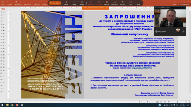 За ініціативи ННІ енергетики, автоматики і енергозбереження, підтримки групи випускників і Ради роботодавців відбулась установча онлайн-нарада за участю випускників інституту різних років.