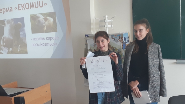 Особливо приємним є визнання того факту, що мовного бар’єру не існує, коли потрібно вирішити цікаве завдання і магістри із базовими знаннями різних спеціальностей НУБіП, серед яких агробіологи, екологи, технологи переробки м’яса та продукції аквакультури успішно розробили політику та цілі у сфері якості для поки, що віртуальних, але в недалекому майбутньому дійсно реальних фермерських господарств, що виробляють екологічні корми для тварин та молочну продукцію з гарантовано відповідним рівнем показників безпечності та якості.