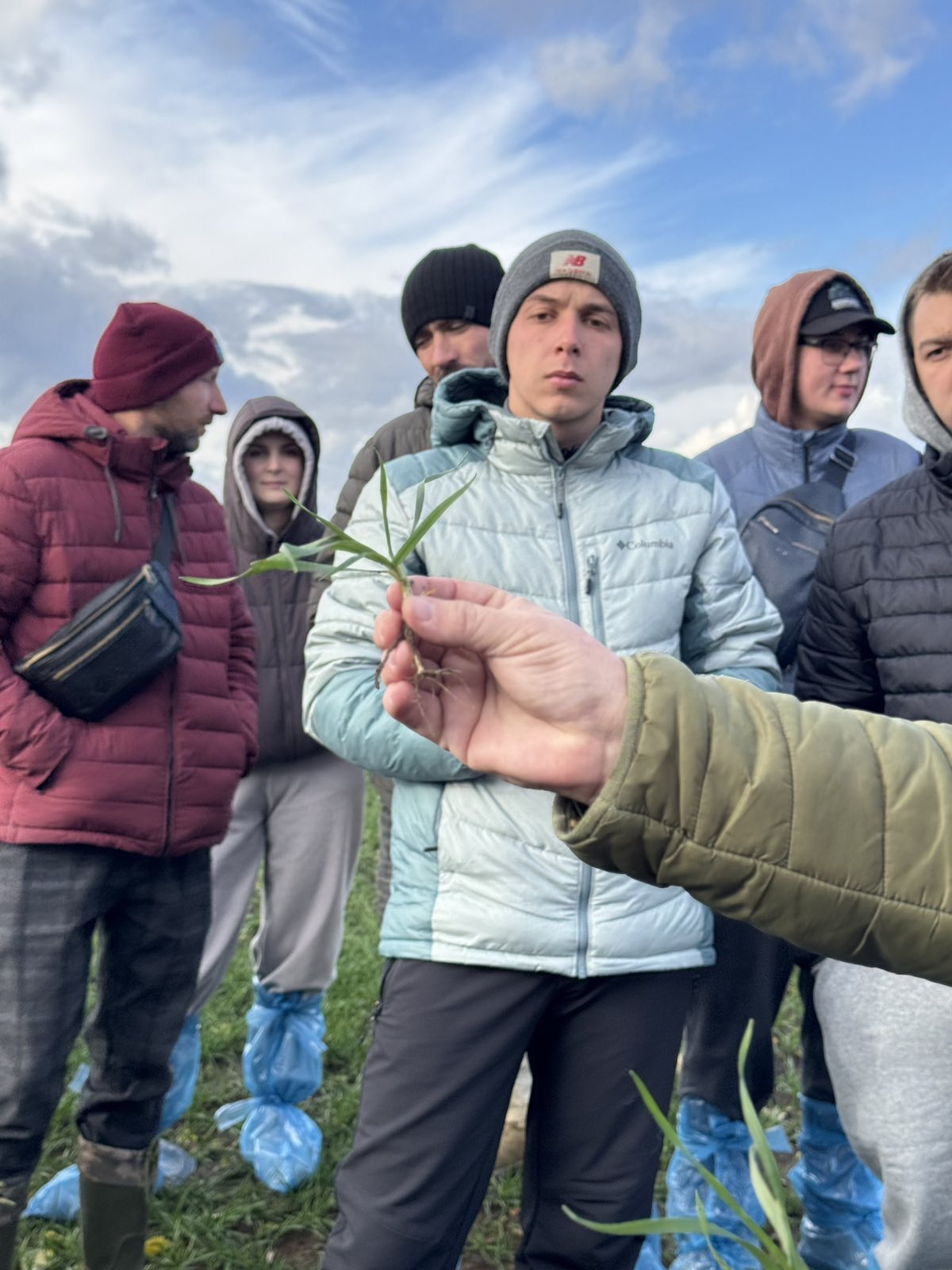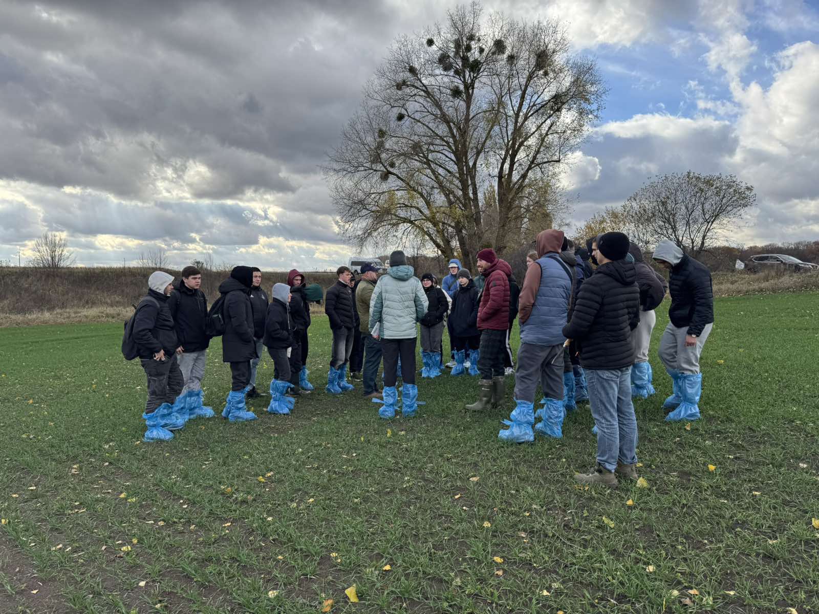 На полі пшениці озимої студенти ознайомилися з технологічними картами вирощування культури, особливостями осінньої та весняної вегетації, а також із ключовими фазами розвитку, що є визначальними для внесення засобів захисту рослин і оптимізації живлення.