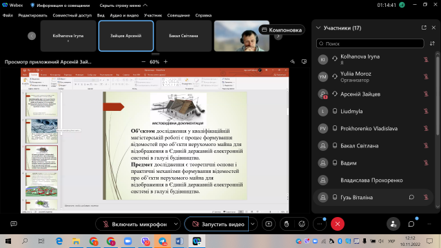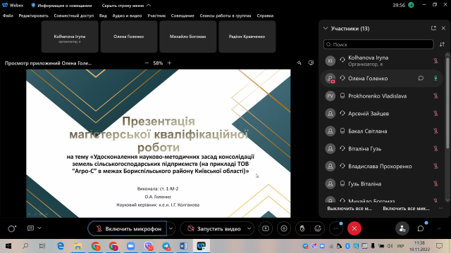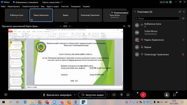 10 листопада 2022 року успішно пройшов попередній захист кваліфікаційних магістерських робіт здобувачів вищої освіти ОС Магістр за спеціальністю 193 «Геодезія та землеустрій» другого року навчання кафедри землевпорядного проектування, які навчаються за магістерською програмою «Землеустрій та кадастр».