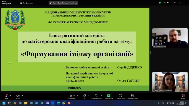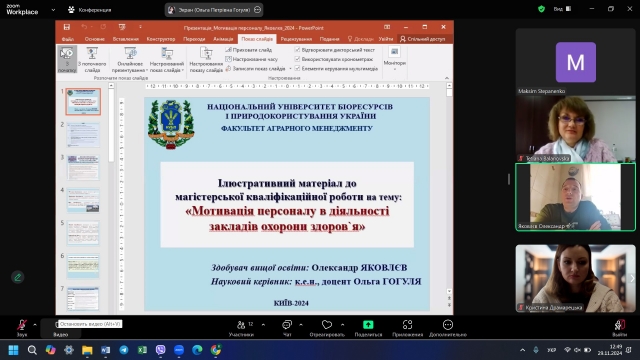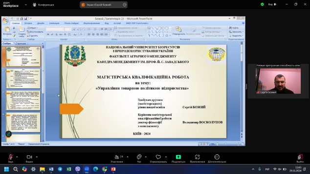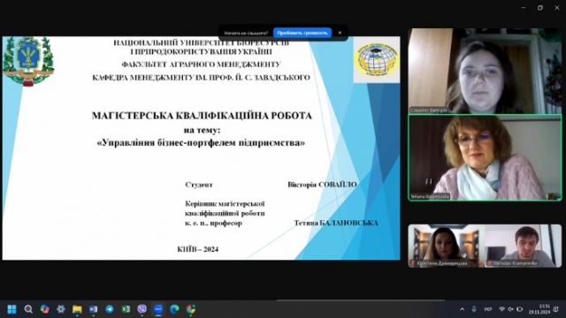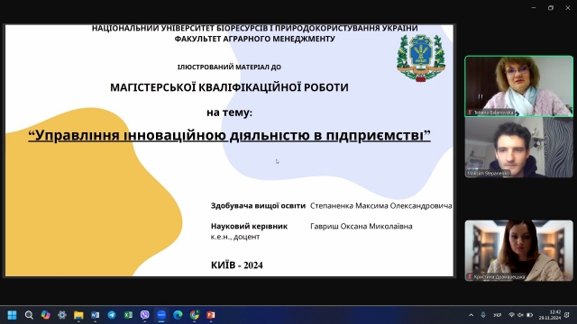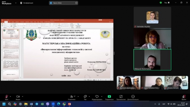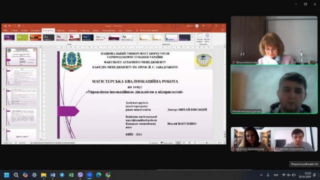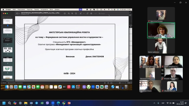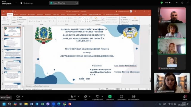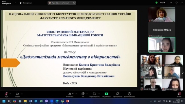 29 листопада 2024 року відбулося чергове засідання кафедри менеджменту ім. проф. Й. С. Завадського, де було розглянуто ряд важливих питань. Зокрема, відповідно до Положення про підготовку магістрів у НУБіП України, Положення про підготовку і захист магістерської кваліфікаційної роботи в НУБіП України, графіку освітнього процесу в університеті, Вимог до атестації здобувачів ОС «Магістр» та попереднього захисту магістерських кваліфікаційних робіт на засіданні кафедри відбувся попередній захист магістерських кваліфікаційних робіт здобувачами другого (магістерського) рівня вищої освіти спеціальності 073 «Менеджмент» освітньо-професійної програми «Менеджмент організацій і адміністрування» денної форми 2 р. н.