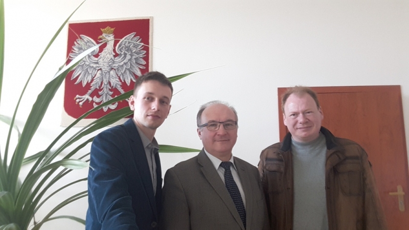 Завідувач кафедри ЕМіЕЕО Жильцов А.В. та старший викладач Березюк А.О. вели розмову з деканом факультету професором Томашем Нуреком (Tomasz Nurek) та професором кафедри основ інженерії Шимоном Гловацкі (Szymon Głowacki) і Веронікою Базиляк (Weronika Bazylak). Результатом перемовин стала попередня домовленість про розвиток спільного напряму досліджень, що пов’язані із застосуванням електричного нагріву в технологічних процесах сушіння сільськогосподарської продукції та біомаси, які входять в коло наукових інтересів обох кафедр.