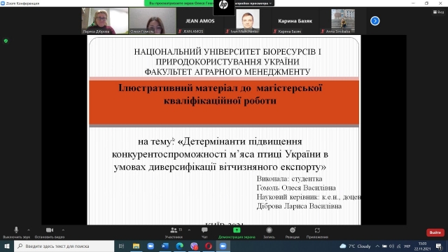 Також 22 листопада було проведено попередній захист магістерських кваліфікаційних робіт здобувачів вищої освіти освітньо-професійної програми «Менеджмент зовнішньоекономічної діяльності» спеціальності 073 «Менеджмент» денної та заочної форм навчання.