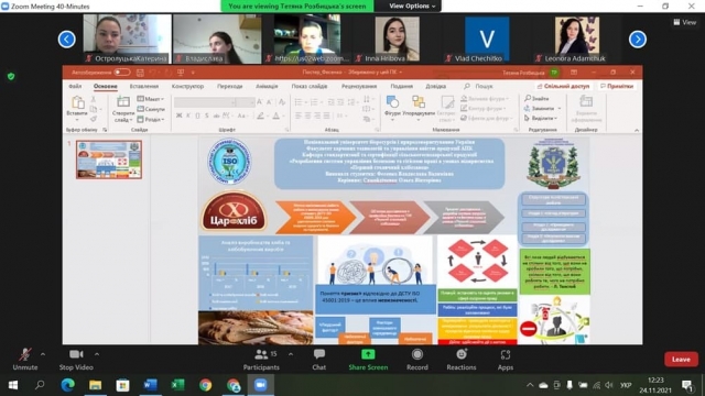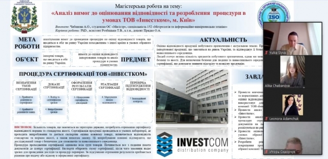 24 листопада 2021 року на факультеті харчових технологій та управління якістю продукції АПК, кафедрі стандартизації та сертифікації сільськогосподарської продукції відбулася постерна презентація магістерських робіт студентів спеціальність 152 - «Метрологія та інформаційно-вимірювальна техніка», освітня програма «Якість, стандартизація та сертифікація».