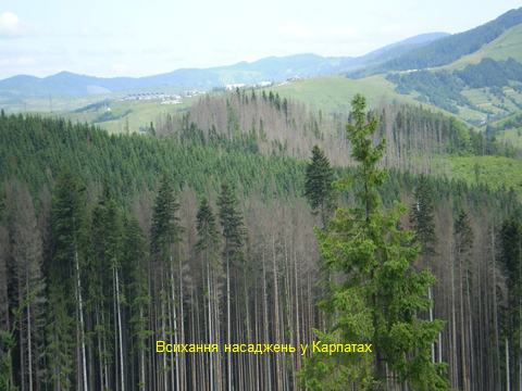 Всихання ялинових насаджень в Карпатах спричинено масовими розмноженнями короїдів: типографа, двійника та гравера