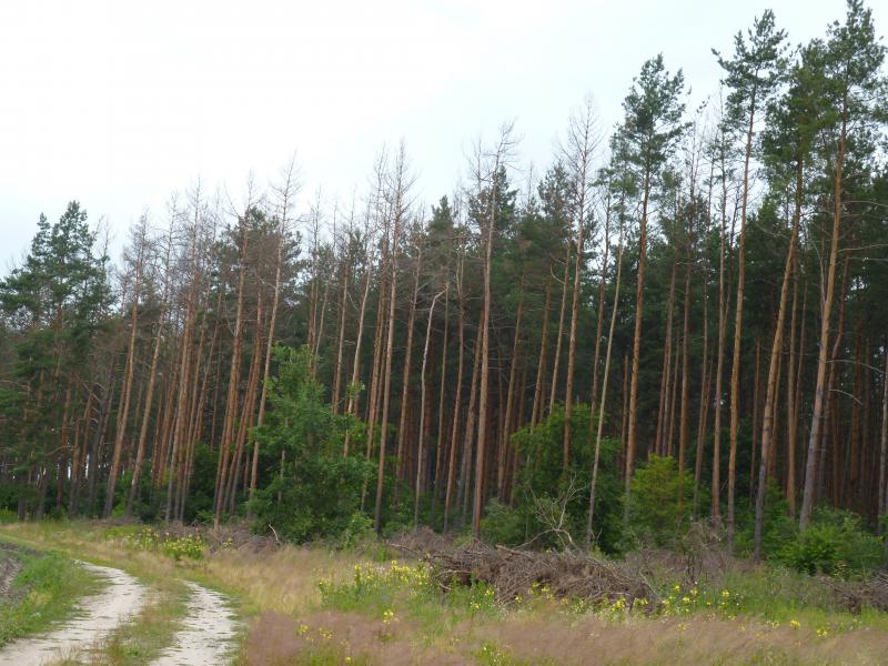 35-річні соснові насадження Чорнобильської зони, об'їдені сосновим шовкопрядом