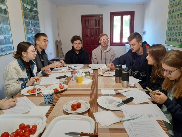 Завершальними акордами навчальної практики були дегустації, а саме визначення смакової оцінки сортів плодових культур (помідора, перцю солодкого), коренеплодів (моркви, селери, петрушки, пастернаку, редиски, редьки лоба, редьки дайкон). Студенти за комплексом ознак (зовнішній вигляд, смак, консистенція м’якуша, забарвлення, соковитість) оцінювали сорти і визначали дегустаційну оцінку сортів за 9–и бальною шкалою. Деякі культури виявилися новими для більшості майбутніх фахівців, але їхніми якісними і смаковими властивостями були приємно вражені. Водночас, студентів здивували й смакові якості бульбочок чуфи, які до цього часу вони не використовували в їжу. При визначенні смакової оцінки сортів студенти змогли переконатись про важливість застосування всіх елементів технології вирощування овочевих культур, від яких залежать господарсько-цінні ознаки, в т.ч. їхні смакові показники.