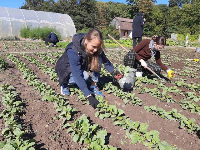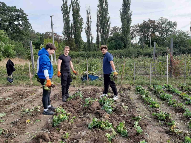 В плівковій теплиці в НЛ «Плодоовочевий сад» студенти змогли ознайомились із видовим і сортовим різноманіттям овочевих культур для літньо-осіннього обороту та особливостями їхнього осіннього догляду. Водночас мали можливість власноручно проводити розпушування ґрунту, підживлювати рослини, проводити поливи.