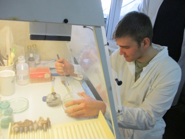 Мікробіологічні посіви відпрацьовує студентка Поліщук Н.