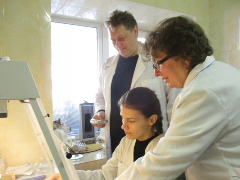 У цьому зв’язку на базі відділу іхтіопатології Інституту рибного господарства НААН України була проведена лабораторна робота з вивчення методів бактеріологічних досліджень, які використовують в іхтіопатології. Студенти магістратури 2 року навчання Поліщук Н., Москаленко О., Андрійчук Ю. мали можливість провести клінічний огляд та патологоанатомічний розтин хворих риб.