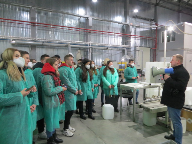 Знайомства із підприємством продовжилося у цеху з виробництва пластикової тари, де студенти мали змогу побачити процес її виготовлення, перевірки на цілісність і міцність, а також повторної переробки відбракованого матеріалу.