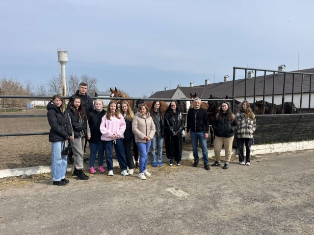 Студенти 6 курсу спеціальності 211 – ветеринарна медицина, які вивчають вибіркову дисципліну «Ветеринарні превентивні технології незаразних хвороб коней», 27 березня 2025 р. під керівництвом доцента кафедри ветеринарної репродуктології Юрія Масаловича відвідали Жашківський кінний завод.