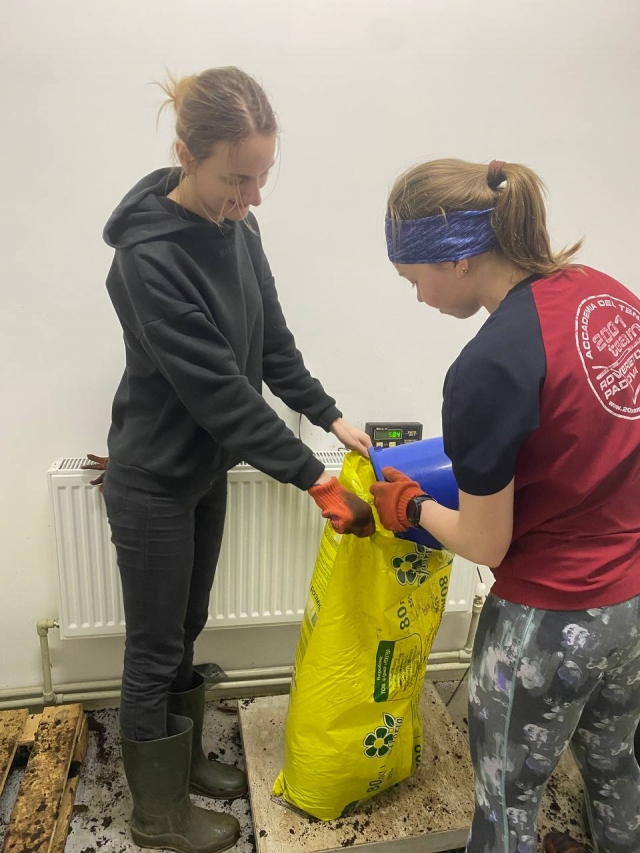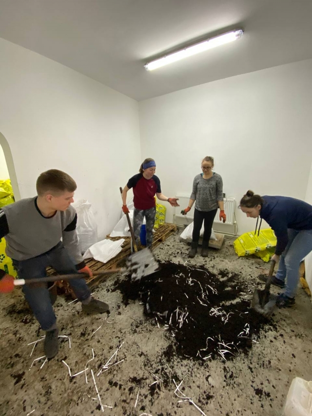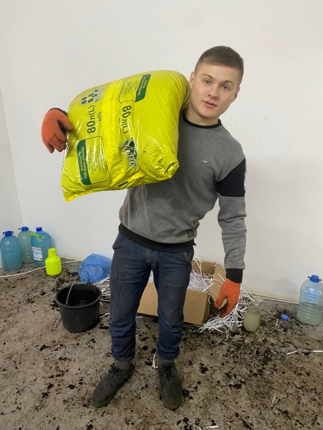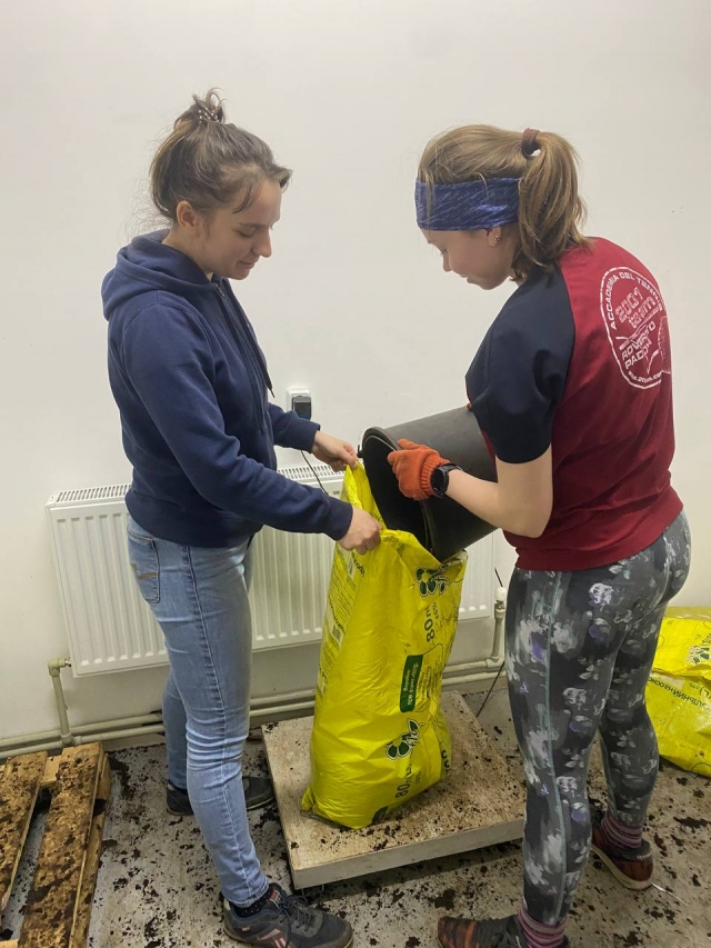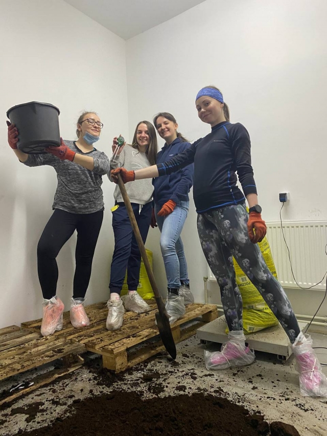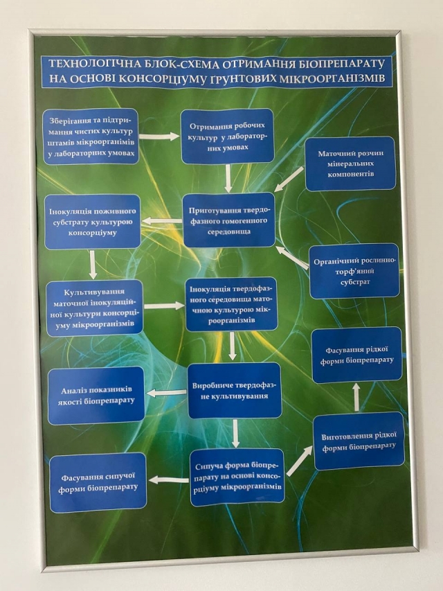 Студенти ОС «Магістр», спеціальності «Захист і карантин рослин» проходили практику у «Великоснітинське НДГ ім. О.В. Музиченка» під керівництвом асистента кафедри екобіотехнології та біорізноманіття Ірини Артемчук та агронома-агрохіміка Сергія Запольського. Робота студентів полягала у виробництві мультифункціонального біологічного препарату – «Екстракон». Біопрепарат «Екстракон» - це природний консорціум ґрунтових мікроорганізмів, який виконує всі етапи трансформації будь-яких органічних речовин в біогумус. Технологія виробництва препарату довготривала та складається з багатьох етапів. Магістри долучилися до приготування сипучої форми біопрепарату, який складався з такої схеми: органічний рослинно-торф’яний субстрат змішувати з маточним розчином мінеральних компонентів, додаючи соляний розчин, папір для живлення мікроорганізмів та додаванням води, ретельно перемішувати, так щоб вологість даного субстрату була приблизно 6%, потів фасування в мішки по 20 кг. Біопрепарат «Екстракон» дозволяє: