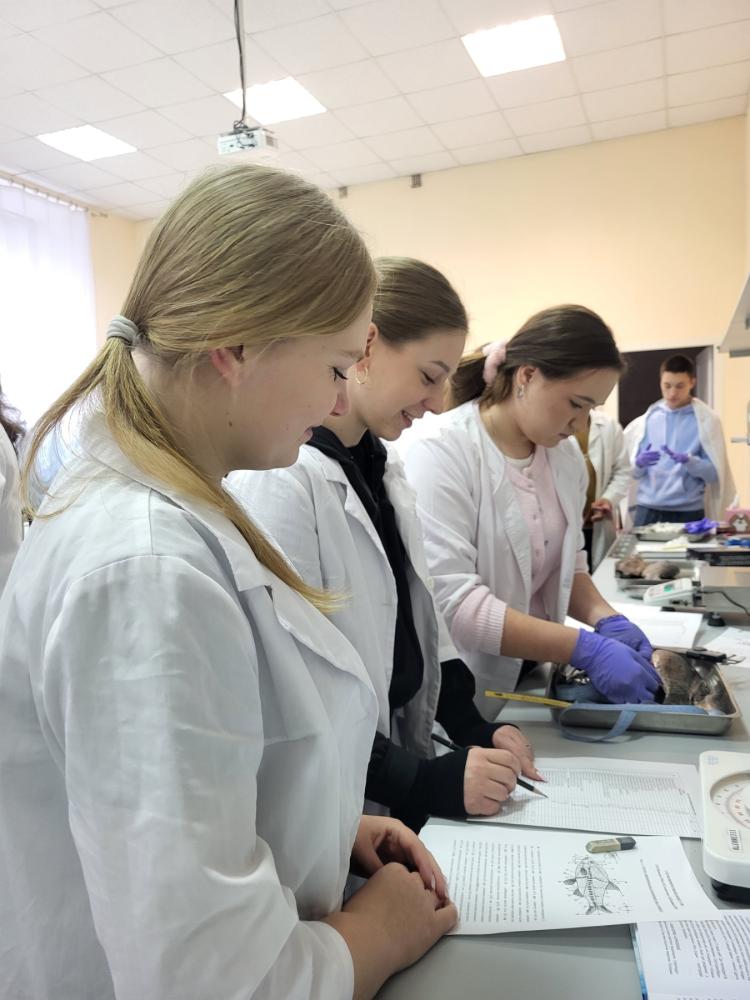 На початку заняття викладачка ознайомила з протоколом виконання лабораторної роботи, виклала основні теоретичні аспекти та акцентувала увагу на необхідності дотримання правил техніки безпеки. Метою заняття було сформувати у здобувачів вищої освіти уміння визначати види риб за ознаками їх зовнішньої будови, а також здійснювати повний морфометричний аналіз для оцінки впливу умов середовища на їх існування.