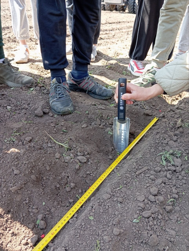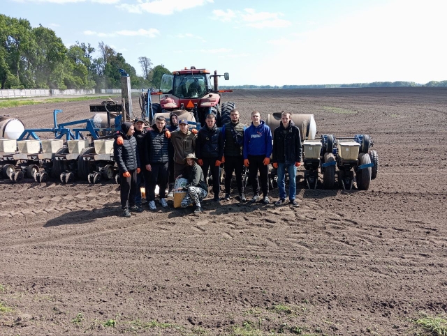 Студенти - агрономи першого курсу,5 та 6 групи на чолі зі старшим викладачем кафедри рослинництва Людмилою Дмитрівною Карпенко, провели практичне заняття із сівби кукурудзи на дослідних ділянках в селищі Снітинка. Теоретичні знання підкріпили на практиці. Навчилися визначати норму висіву та глибину згортання насіння. Робили виміри температури грунту.