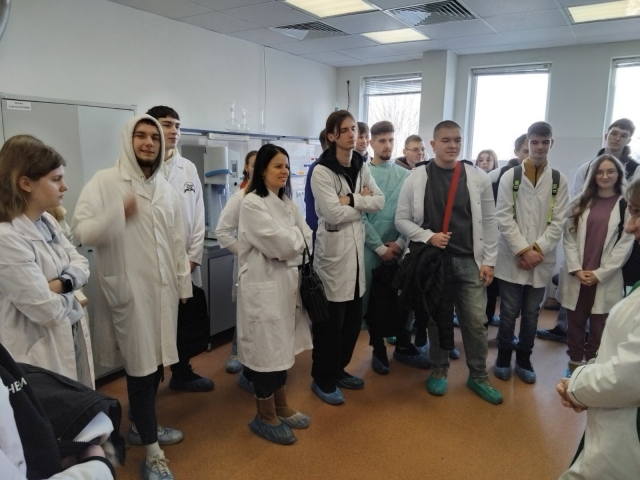 Під час відвідування Науково-дослідного відділу моніторингу безпеки продукції АПК студенти дізналися про сучасне обладнання та методики визначення ключових показників безпечності агропромислової продукції. Вони ознайомилися з методами визначення елементного складу та залишкових кількостей пестицидів та важких металів у об’єктах довкілля. Завідувач науково-дослідного відділу моніторингу безпеки продукції АПК, к.вет.н., старший дослідник, доцент Світлана Мідик продемонструвала можливості визначення вмісту одного хімічного елемента методом атомної абсорбції, а також комплексного дослідження 17, 20 або 33 елементів методом атомної емісії з індуктивно зв’язаною плазмою. Світлана Вікторівна приділила особливу увагу аналізу ідентифікації токсичних елементів, зокрема свинцю, кадмію, арсену, ртуті, міді та цинку, вміст яких суворо регламентується нормативними документами. Студенти також ознайомилися з методами визначення діючих речовин у пестицидах та засобах захисту рослин, зокрема високоефективною рідинною та газовою хроматографією. Також були розглянуті методи аналізу залишків пестицидів у різних об'єктах довкілля, таких як ґрунт, вода та рослини, а також у нежирових рослинних продуктах, використовуючи методи рідинної та газової хроматомас-спектрометрії.