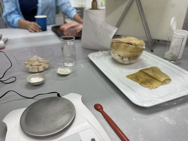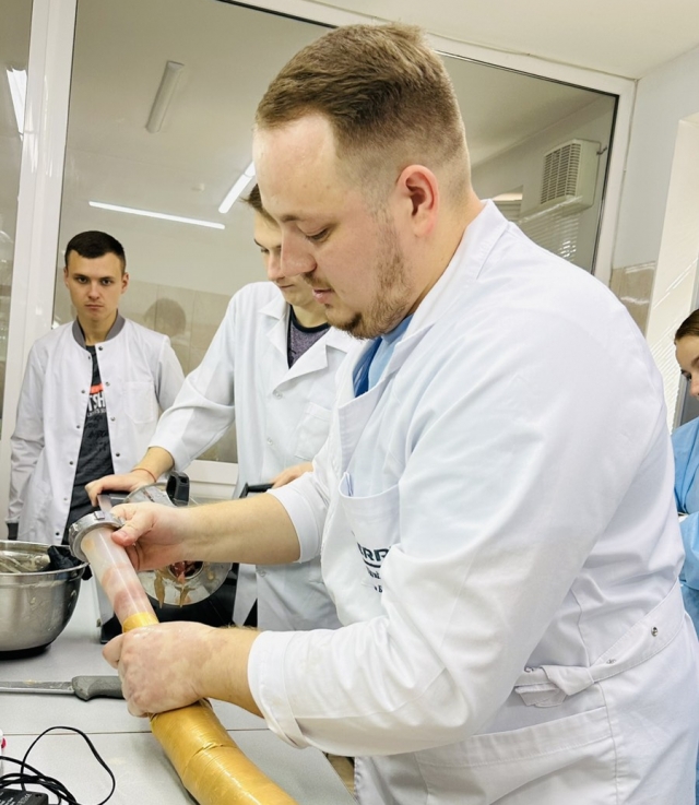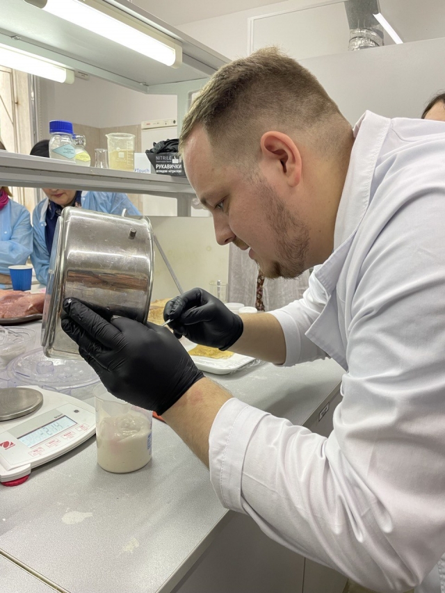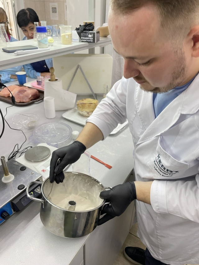 Друга команда магістрів-дослідників працювала над впровадженням у технологію м’ясопродуктів методу реструктурування низькосортної вітчизняної сировини, з метою розширення асортименту м’ясних виробів.