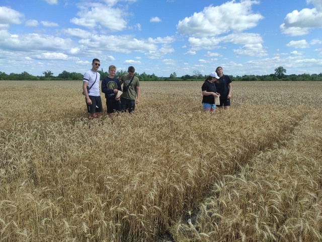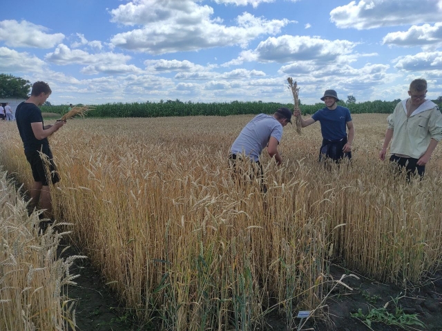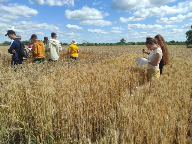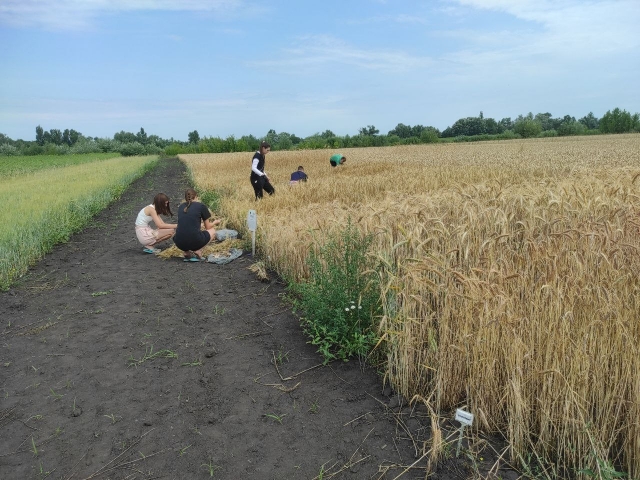 Наші студенти під час навчальної практики прийняли участь в оцінці колекційних зразків за наступними показниками: визначення продуктивної кущистості сортів, густоти стояння рослин, стійкості до вилягання, висоти різних сортів, підготували сноповий матеріал із 78 колекційних зразків пшениці озимої м'якої для визначення показників якості.