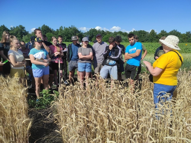 Для забезпечення ефективної практичної складової у підготовці фахівців агробіологічного факультету Національного університету біоресурсів і природокористування України відповідно до робочого навчального плану студенти 2 курсу 5, 6, 7, 8 груп ОС «Бакалавр» спеціальності 201 «Агрономія» 12-13 липня проходили навчальну практику з дисципліни "Селекція і насінництво польових культур" під керівництвом Ганни Ковалишиної, професора кафедри генетики, селекції і насінництва ім. проф. М.О. Зеленського, та Ірини Шпакович, асистента кафедри.