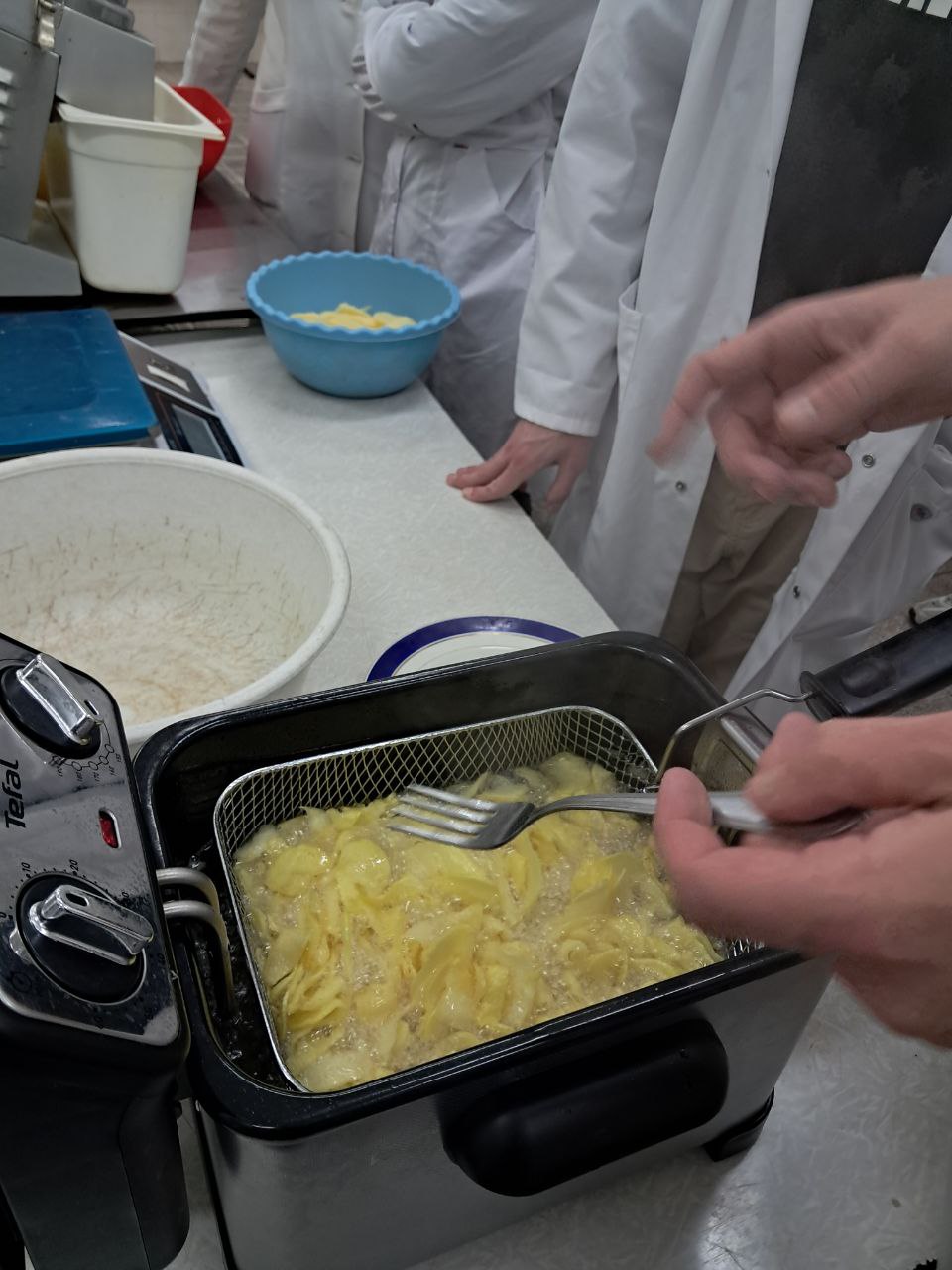 Одним із найцікавіших етапів практики є оцінка якості бульб картоплі для виробництва чіпсів. Студенти аналізують різні сорти картоплі, визначають їх придатність до переробки, а потім власноруч виготовляють натуральні картопляні чіпси, які згодом дегустують, порівнюючи смак і текстуру, щоб обрати найкращі сорти для подальшого виробництва.