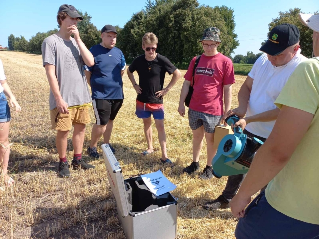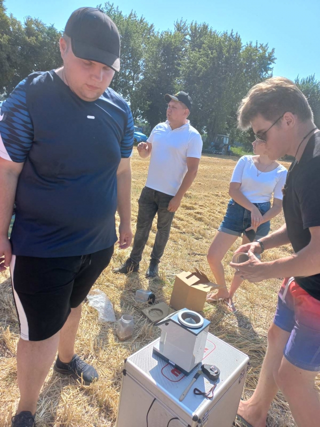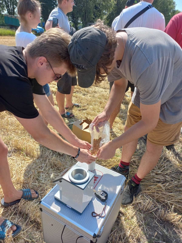 Студенти під керівництвом викладачів проаналізували якість збирання озимої пшениці у господарстві. Мали можливість ручним комбайном відібрати зразки для визначення вологості зерна на час збирання.