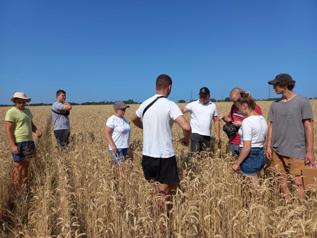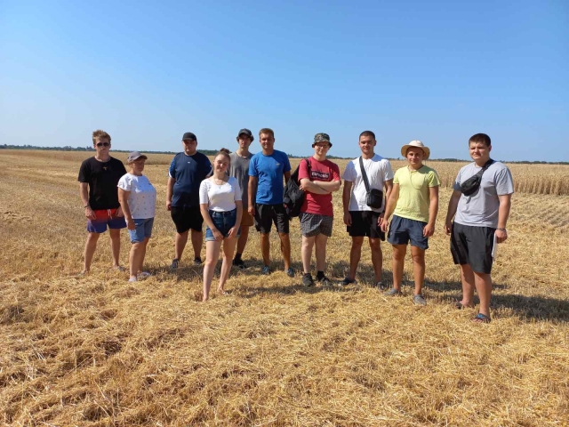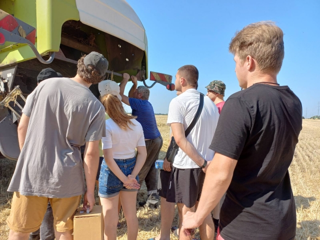 В дослідному господарстві студенти були присутні на збиранні озимої пшениці. Агроном господарства проінформував студентів який висівали сорт, яка була застосована технологія вирощування пшениці озимої. Практиканти були проінформовані і ознайомлені з таким методом підготовки насіння до сівби як – протруювання, її значення в загальній системі технології вирощування.