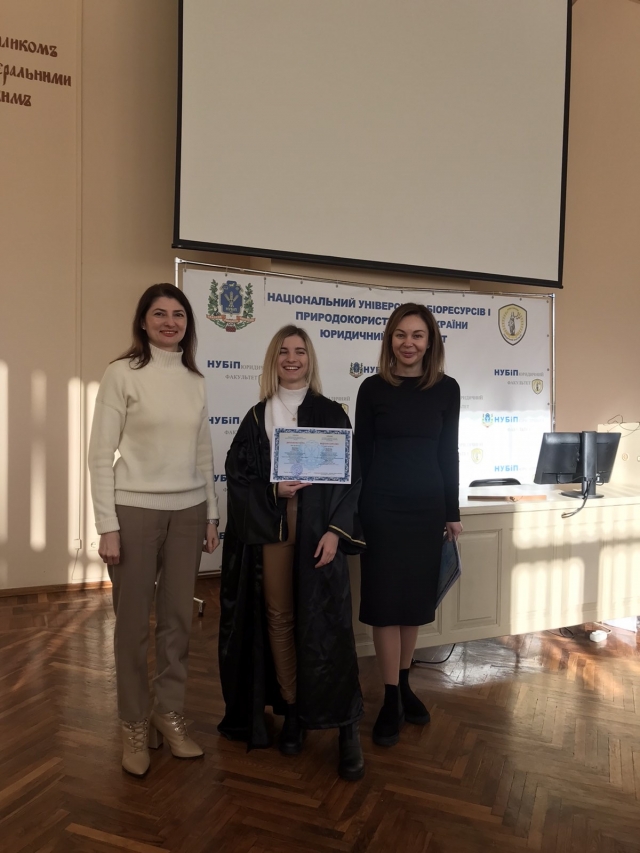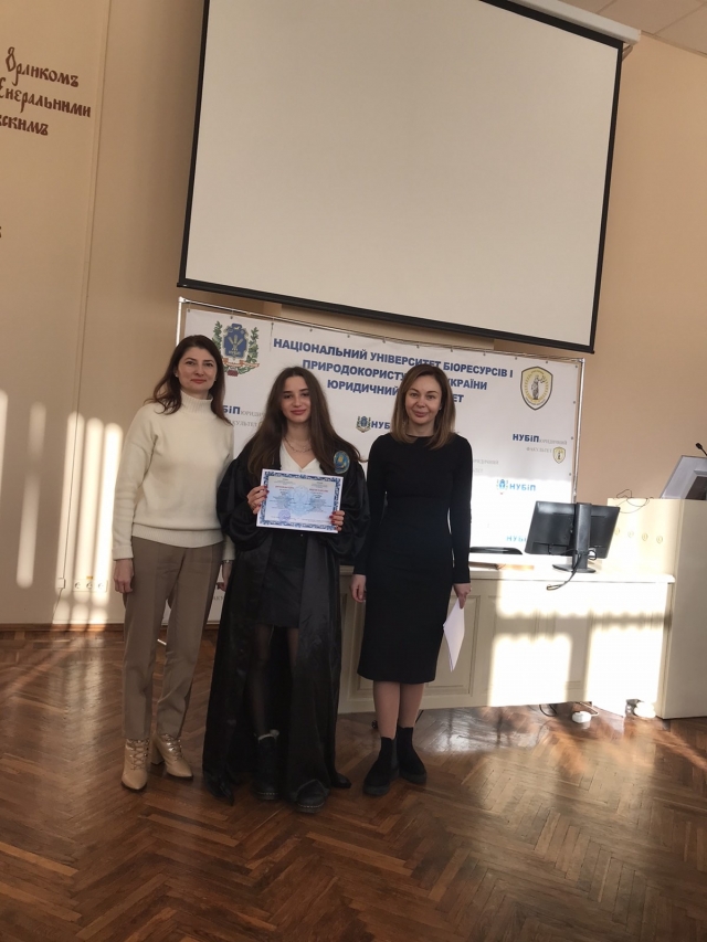 Радо привітала випускників очильниця факультет Олена Яра, яка зауважила що незважаючи на скрутний час, ми сьогодні підбиваємо підсумок вашого навчання. «Сьогодні перед вами відкриваються нові життєві обрії. Насолоджуйтесь молодістю, будьте сміливими, натхненими, націленими на успіх. Сподіваюсь, за час навчання на юридичному факультеті НУБіП України ви усвідомили своє покликання, а диплом магістра, буде для вас не просто документом про вищу освіту, а й надійним провідником на життєвому шляху. Пам’ятайте ваших викладачів та наставників. На перших порах обов’язково звертайтеся до них за порадою. Це дозволить вам легше увійти у професійний шлях. Вірю, що відчуття гідності та відданості своїй професії ви пронесете через усе своє життя! Творіть майбутнє!»