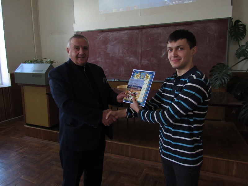 1 місце – Матвієнко Ярослав, студент 4 курсу, 4 групи;