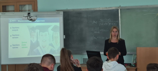 Під час дискусії представники ПрАТ «МХП» відповідали на запитання студентів, додатково зупинившись на перевагах, які надає «МХП» здобувачам, зокрема орієнтованій заробітній платі, соціальному пакеті та ін.