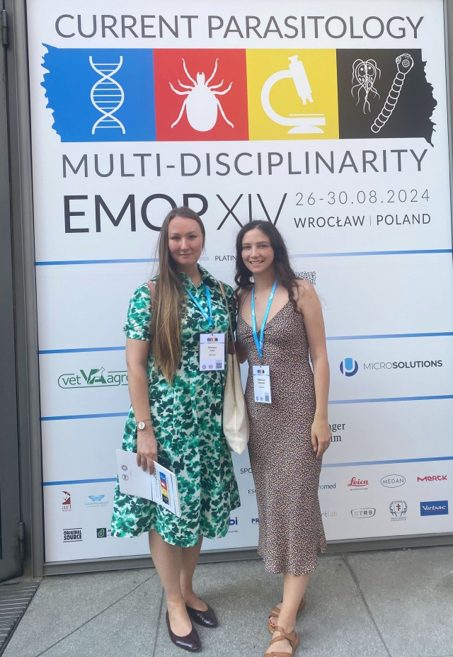 26-30 серпня професор кафедри ветеринарної епідеміології та охорони здоров’я тварин Марина Галат і здобувачка третього ступеня вищої освіти за освітньо-науковою програмою «Заразна патологія тварин» Владислава Сторожук (науковий керівник – професор Марина Галат) взяли участь у XIV Європейському мультиколоквіумі з паразитології, який відбувся у м. Вроцлав (Польща). Цей захід об’єднав понад 200 учасників-паразитологів з майже 50 країн світу від гуманної медицини і ветеринарної, а також біологів, і відбувався за підтримки комітету Польського паразитологічного товариства та Європейської федерації паразитологів.
