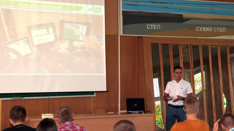 20 травня директор компанії «Agrilab» Ярослав Іванович Бойко спільно із завідувачем кафедри агрохімії та якості продукції рослинництва ім. О.І. Душечкіна Анатолієм Вікторовичем Бикіним презентував навчальнo-практичний інноваційний агропроект «AgriStart» студентам 3 курсу агробіологічного факультету, які обрали спеціалізацію «Агрохімія і ґрунтознавство».
