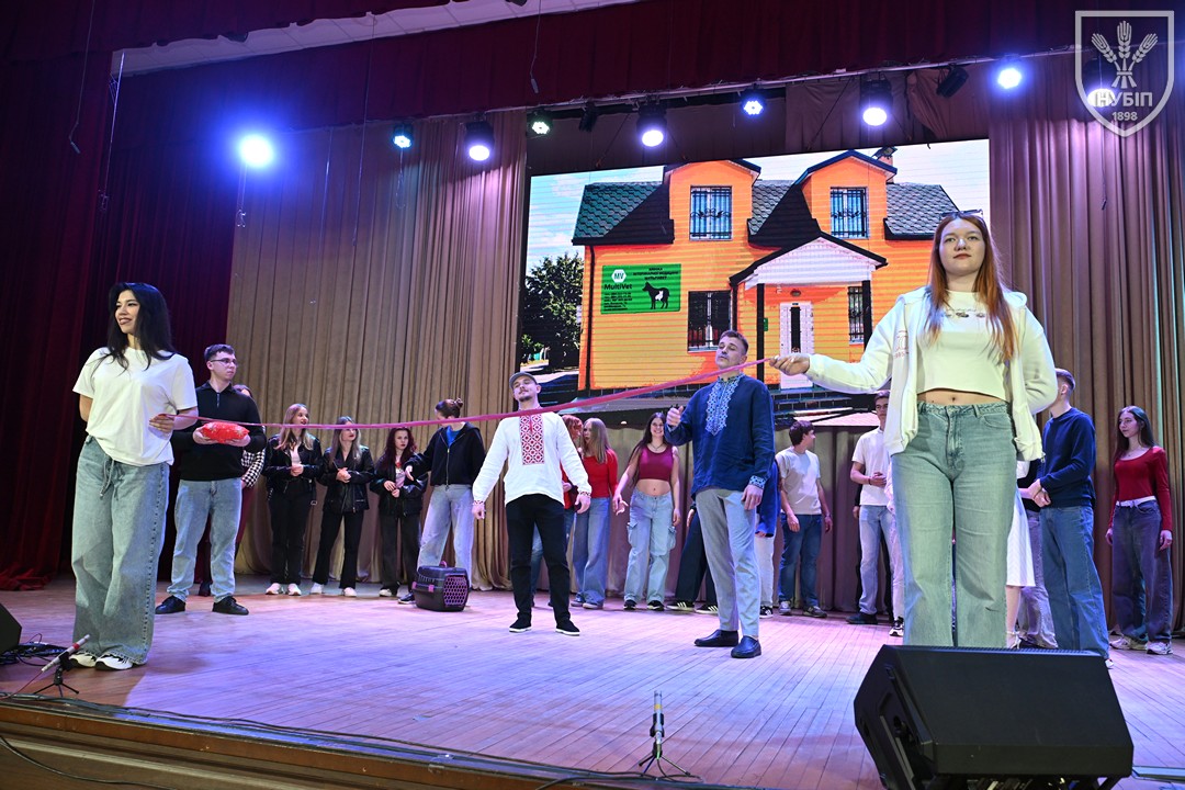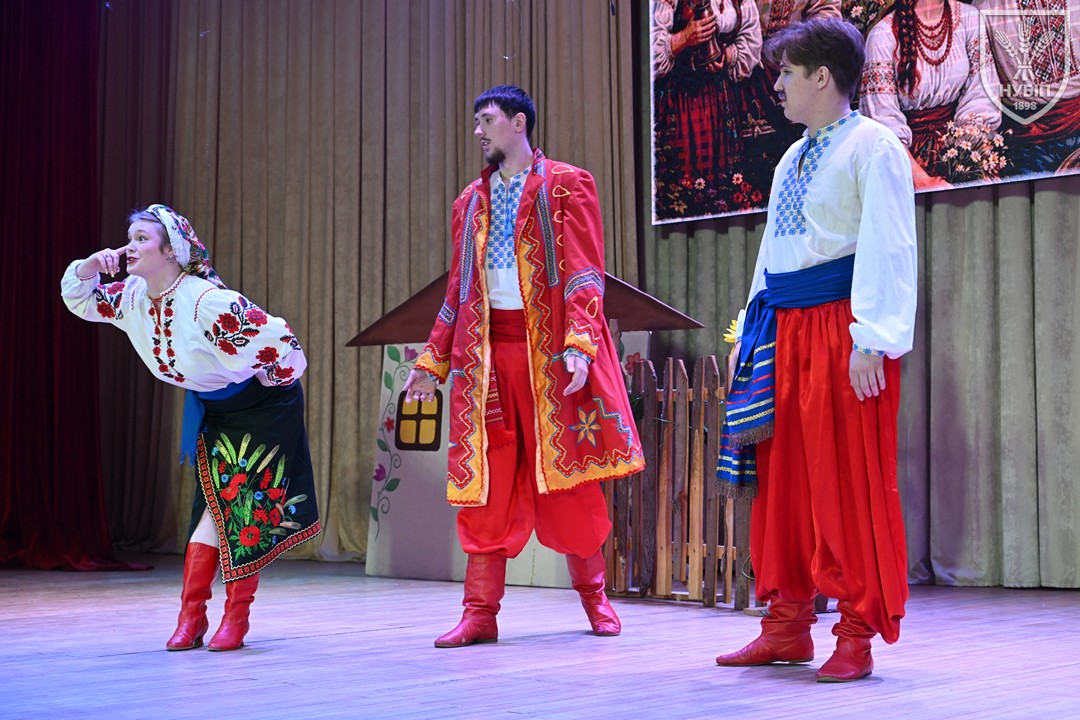 Другими на сцену вийшли майбутні ветеринари. Тут глядачів відразу чекало відкриття (можливо, так і буде, є ж така номінація для переможців фестивалю!): роль Марка КРОПИВНИЦЬКОГО зіграв заступник декана факультету ветеринарної медицини, доцент Роман ДИМКО. Роман Олександрович ще й став солістом у фінальній пісні «Кохання»! Під таким керівництвом театральна постановка на тему комедії «Пошилися в дурні» виглядала яскраво, експресивно, дотепно. Особливо запалив третьокурсник Іван КОВТУН, який і номери ставив, і в роль вжився, і в танці соло виконав професійно.