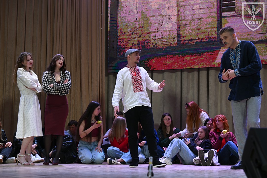 Факультет землевпорядкування на сцену вийшов із фрагментами соціально-побутової комедії Григорія КВІТКИ-ОСНОВ'ЯНЕНКА «Сватання на Гончарівці». Студентки Юлія КОРОБОВА та Анна СІТАЙЛО були по-своєму оригінальні: до мотивів Квітки-Основ'яненка додали і «Лісову пісню» Лесі УКРАЇНКИ, і «Запорожця за Дунаєм» Семена ГУЛАКА-АРТЕМОВСЬКОГО. Глядачі посміялися від душі!
